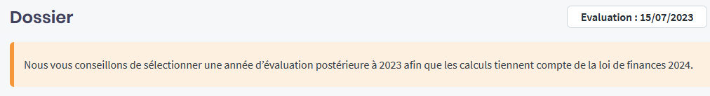 A chaque ouverture de dossier, la date d’évaluation est actualisée sur la date système. Ainsi, quelle que soit la date de création du dossier, l’ensemble des calculs s’effectue systématiquement à la date du jour.