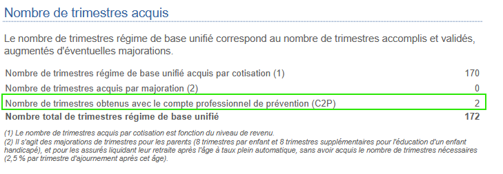 Un premier paramètre « Retraite pour pénibilité » est dédié à la pénibilité et son activation permet de renseigner le nombre de trimestres du compte professionnel de prévention (C2P).