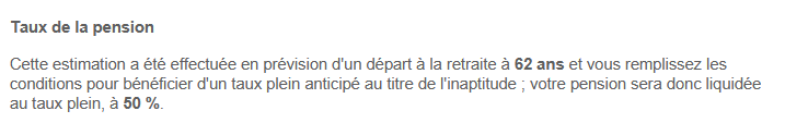 Le deuxième paramètre « Retraite pour inaptitude » permet de calculer un départ à taux plein à 62 ans pour être conforme à la réforme des retraites.