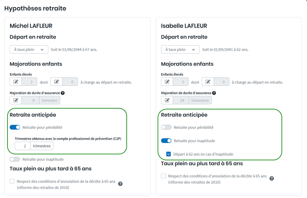 Estimer plus précisément la retraite anticipée au titre de la pénibilité ou de l’inaptitude grâce à la distinction de ses deux paramètres dans les hypothèses de la retraite.
