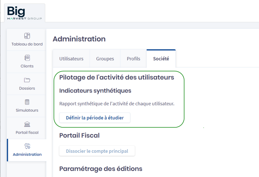Cette fonctionnalité désignée par « Pilotage de l’activité » est accessible depuis l’onglet « Société » de la zone « Administration ».