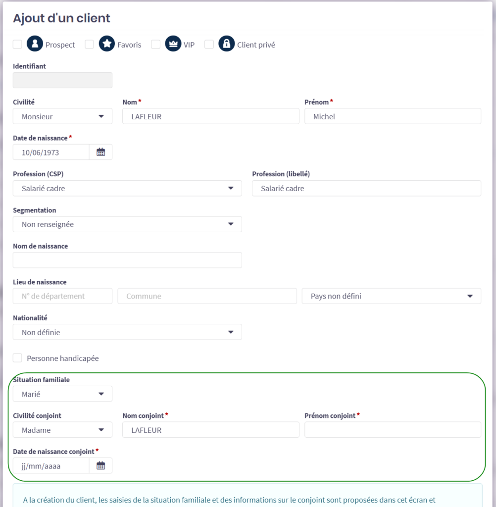 Saisie du conjoint à la création d’un client