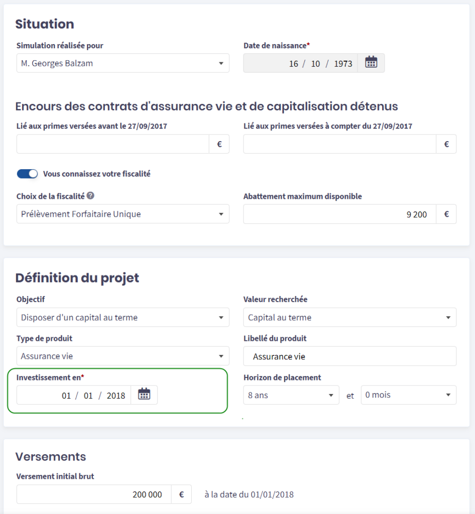 De plus, une plus grande souplesse vous est offerte dans vos simulations en autorisant une date d’investissement supérieure ou égale au 01/01/2018.
