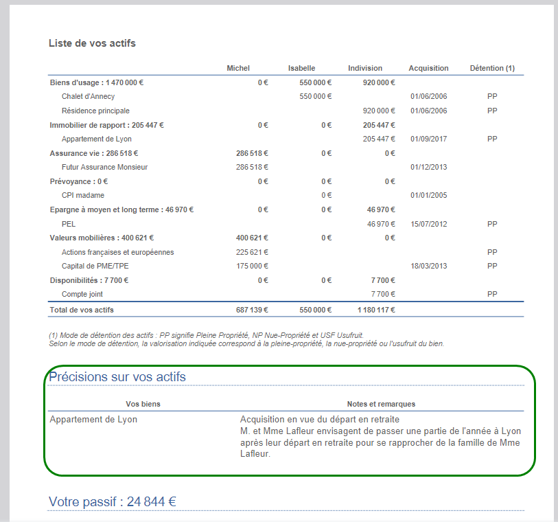 Afin de compléter les informations déjà proposées en saisie, nous avons donné la possibilité de renseigner des notes non seulement sur les actifs mais aussi sur les passifs, les revenus et les charges.