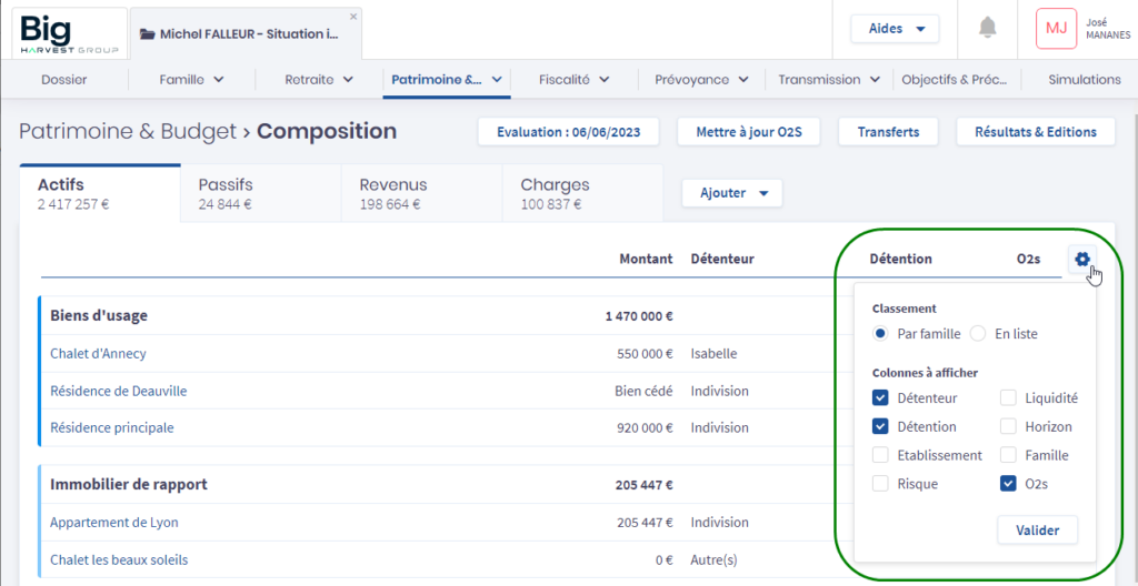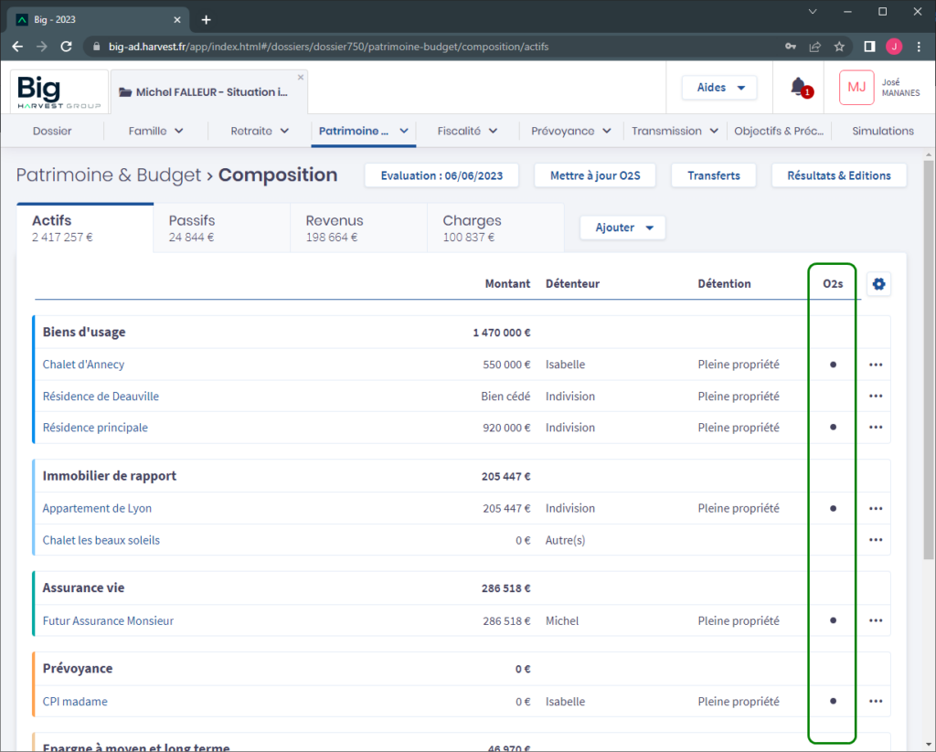 Afin de mieux vous guider lors de l’association d’un client Big avec un client O2s (fusion de contact), nous avons ajouté une colonne « O2s » dans la liste des actifs, passifs, revenus et charges. Cette colonne indique par un point, les actifs ayant un actif correspondant dans O2s.