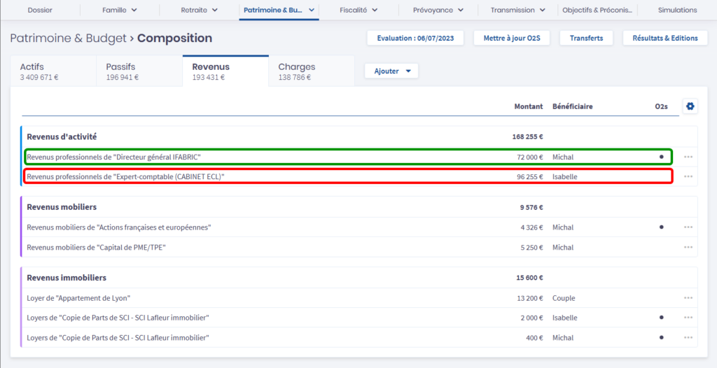 En plus des données relatives au client, au conjoint, aux actifs et passifs, il est désormais possible d’échanger les revenus et charges entre les deux applications.
