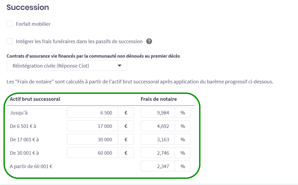 Pour une meilleure estimation des frais de notaire dans Big, notamment sur les successions de plus d’1 million d’euros, nous avons constitué un nouveau barème intégrant les émoluments suivants :