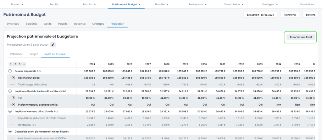 Pour vous permettre de mettre en forme à votre guise les éléments importants, vous avez la possibilité d’exporter la projection au format Excel et de personnaliser la présentation comme bon vous semble.