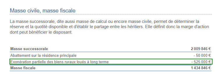 Retrouvez le montant de l’exonération calculé sur la page “Masse successorale” paragraphe “Masse successorale, masse fiscale” en cas de succession, et le montant de la valeur de la donation nette d’exonération sur les pages “Donations” le cas échéant.