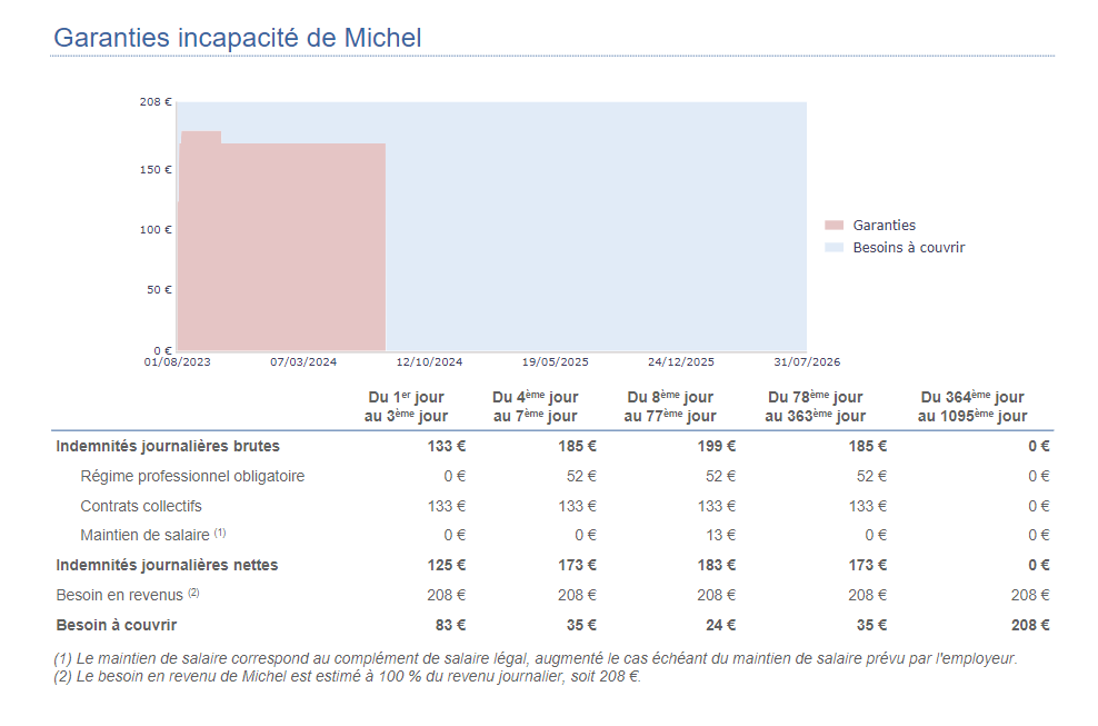 Nous travaillons actuellement sur les éditions de la prévoyance ce qui nous a amené à apporter quelques améliorations. La première amélioration consiste à mettre en avant les besoins sous leur forme graphique que ce soit en cas de décès, d’incapacité ou d’invalidité.