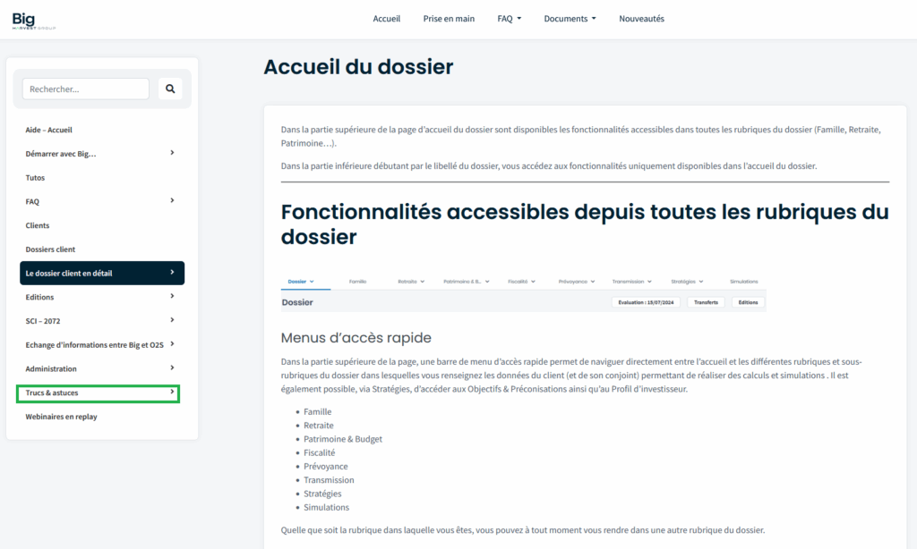 Comme auparavant, grâce à la table des matières située à gauche de l’écran, accédez directement aux grandes fonctionnalités et à nos Trucs & Astuces. Que vous soyez sur ordinateur, tablette ou mobile, la navigation s’adapte à votre support pour une expérience fluide.