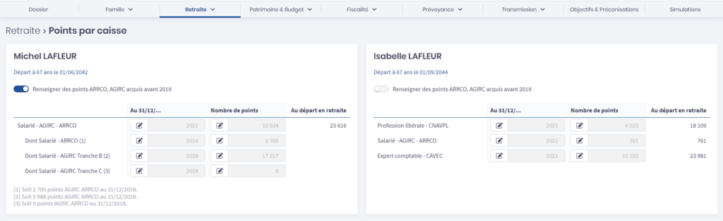 Saisie des points retraite