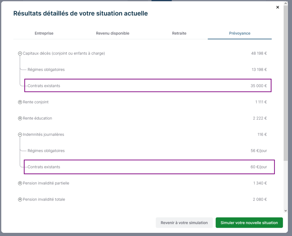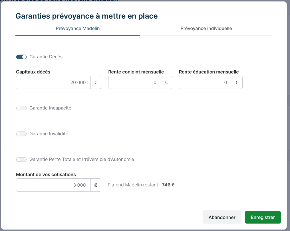 - La possibilité de renseigner des cotisations sur les contrats à mettre en place et notamment des cotisations déductibles Madelin