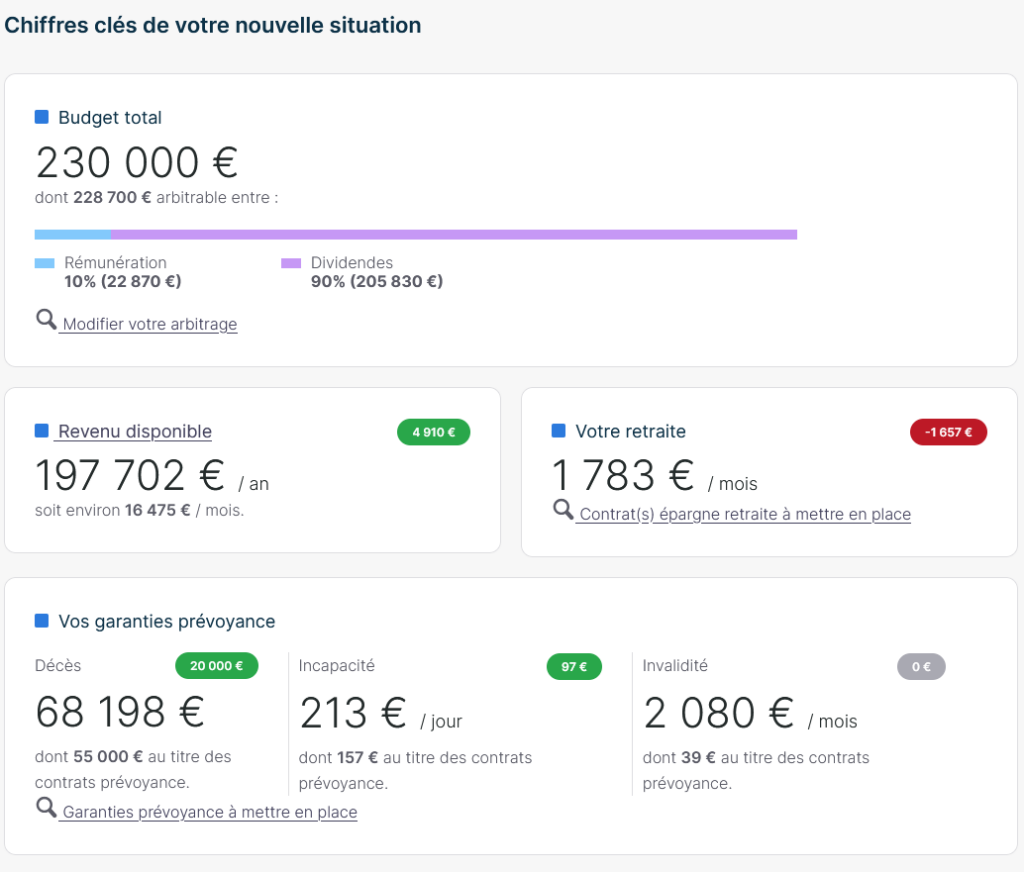Pour attirer l’attention, un code couleur met en avant l’impact positif (vert) ou négatif (rouge) de l’impact de la nouvelle situation