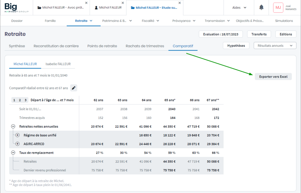 Pour répondre à vos demandes, nous avons ajouté la possibilité d’exporter sous Excel le comparatif retraite. Dans ce fichier, vous retrouvez l’intégralité des résultats présentés à l’écran que vous pouvez personnaliser selon vos souhaits.