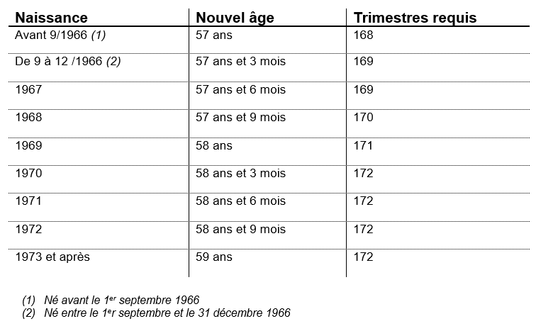 Le nombre de trimestres requis pour un départ en retraite à l’âge légal évolue comme suit selon l’année de naissance :