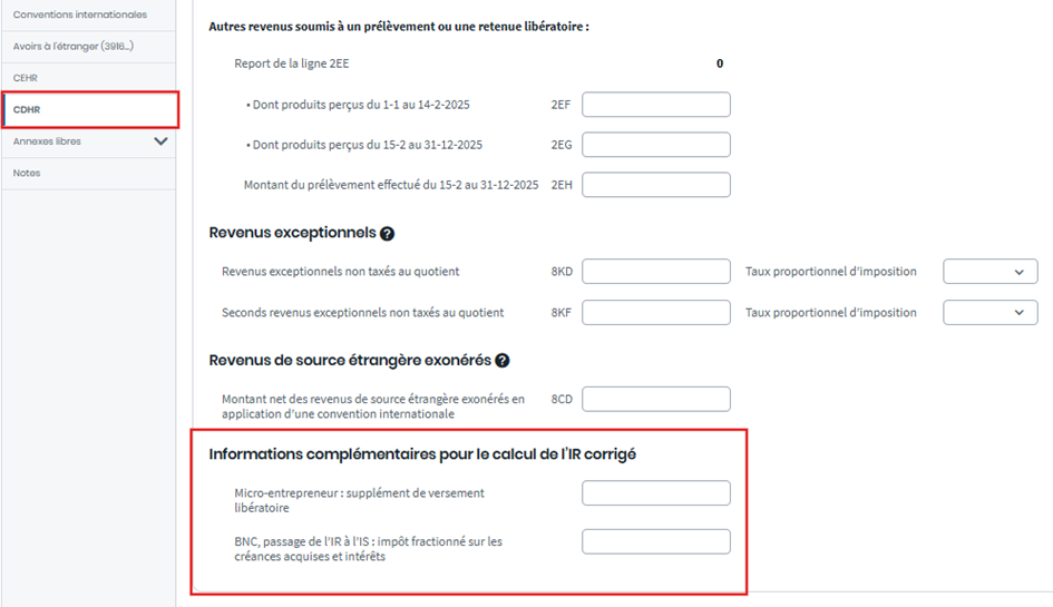 Informations complémentaires pour le calcul de l’IR corrigé
