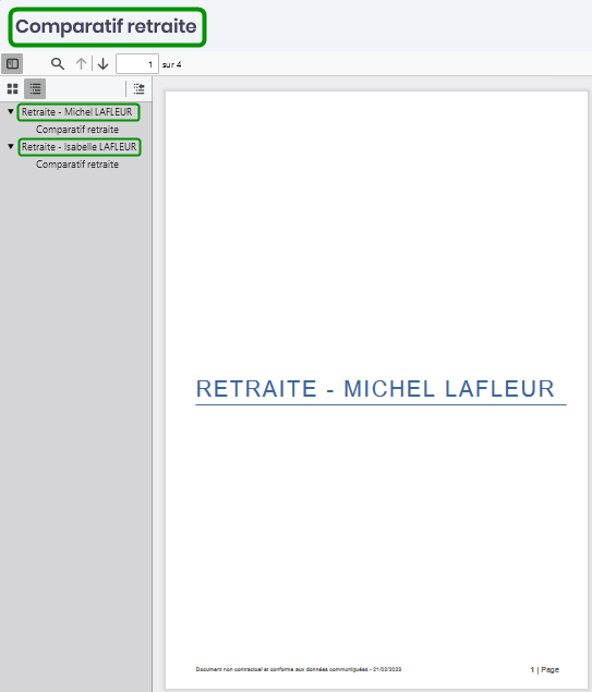 Des intercalaires mentionnant le nom du client et celui du conjoint ont été ajoutés au rapport Comparatif retraite afin d’améliorer la distinction entre les deux comparatifs.