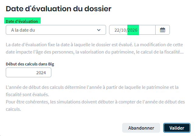 En positionnant la date d’évaluation du dossier en 2026, vous pouvez constater l’application du taux de 25 % :