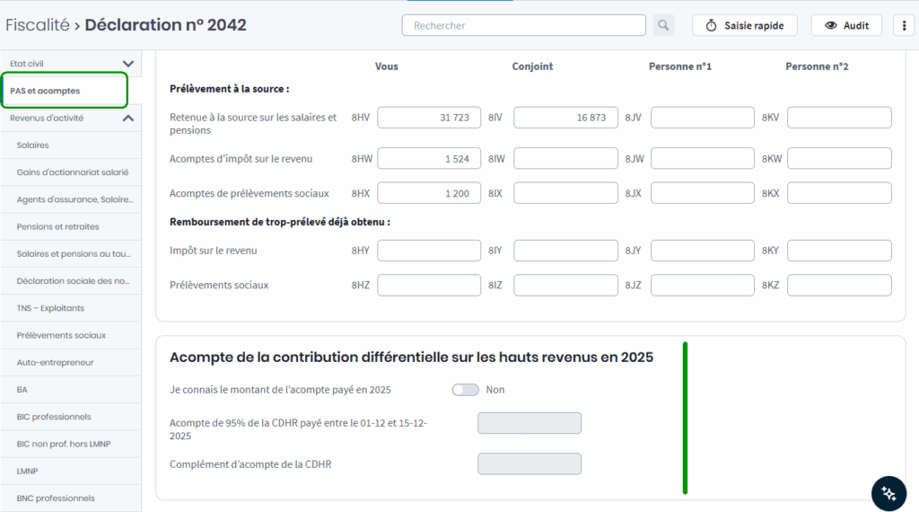 Cependant dans cette version les formulaires de saisie des déclarations sont ceux permettant une estimation plus précise du montant de l’impôt sur le revenu 2025 afin de calculer la CDHR.