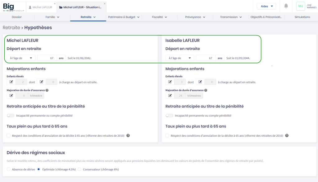 La définition de l’âge de départ en retraite est désormais positionné dans l’écran Hypothèses retraite.