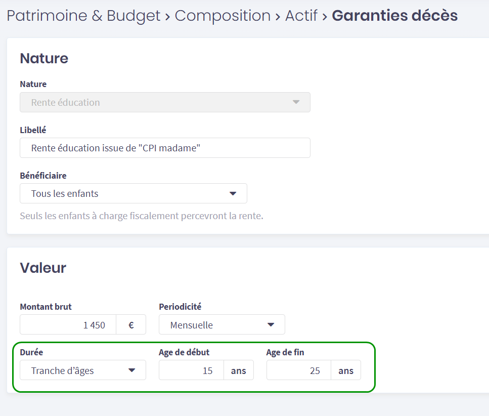 Afin de faciliter la saisie des rentes d’éducation dans les contrats prévoyance individuelle, la durée de perception de la rente peut désormais être définie par tranche d’âges.