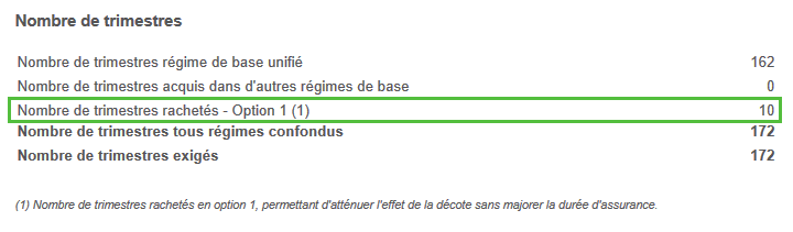 Par exemple, s’il est possible de racheter 5 trimestres, la liste s’arrête à 5 et non à 12 trimestres.