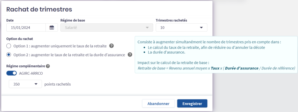 Vous l’attendiez, saisir des rachats de trimestres est désormais possible dans Big.