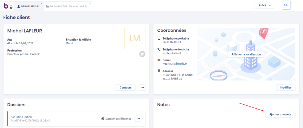 Depuis l’écran « Fiche client », grâce au bouton Ajouter une note, saisissez des notes sur le client avec la mise en forme de votre choix.