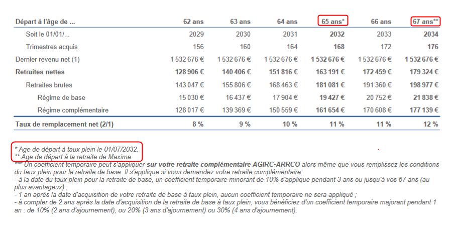 Enfin, la légende du tableau du comparatif retraite a été enrichie pour permettre l’identification de l’âge de départ à la retraite et de l’âge de départ à taux plein.