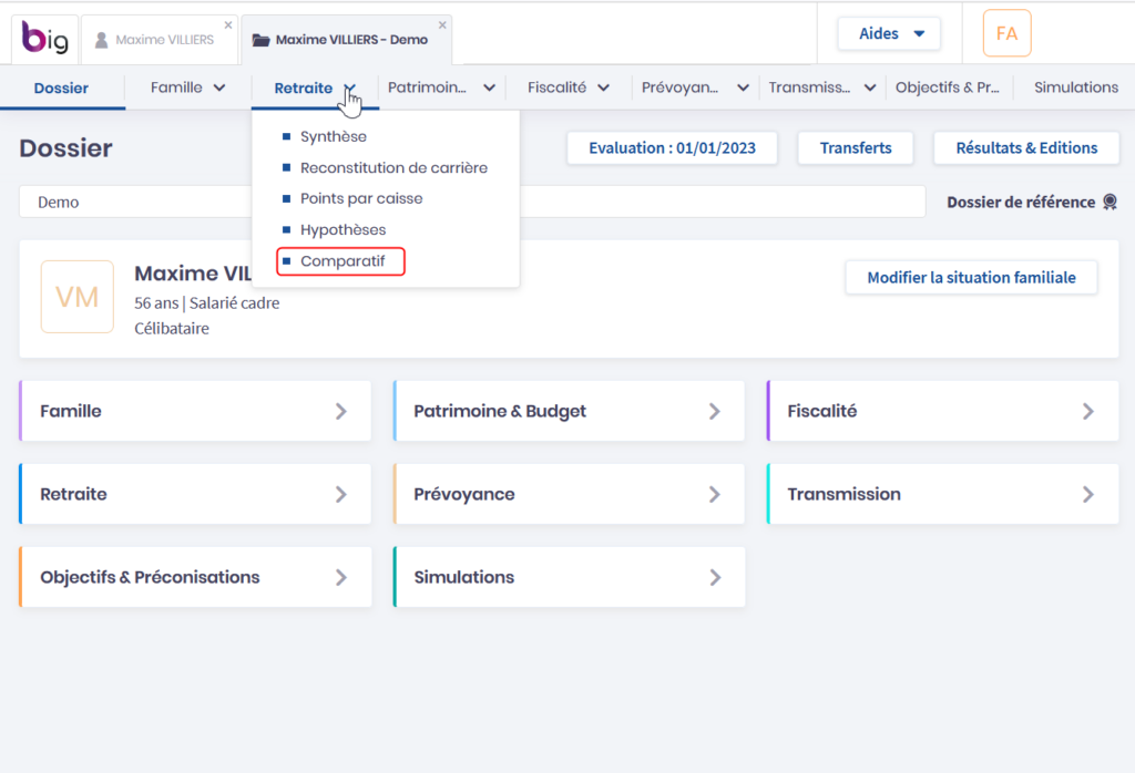 Consultez à présent les résultats du comparatif retraite et de la projection directement dans l’application, sans avoir à passer par les éditions.