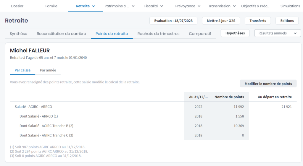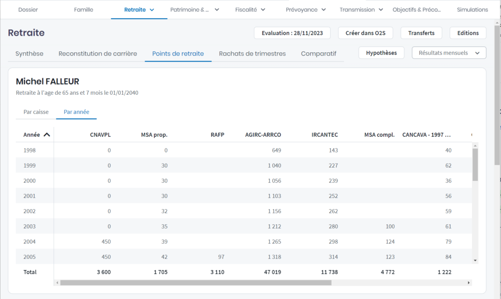 A cette occasion, nous avons revu la présentation du total des points de retraite par caisse et leur modification.