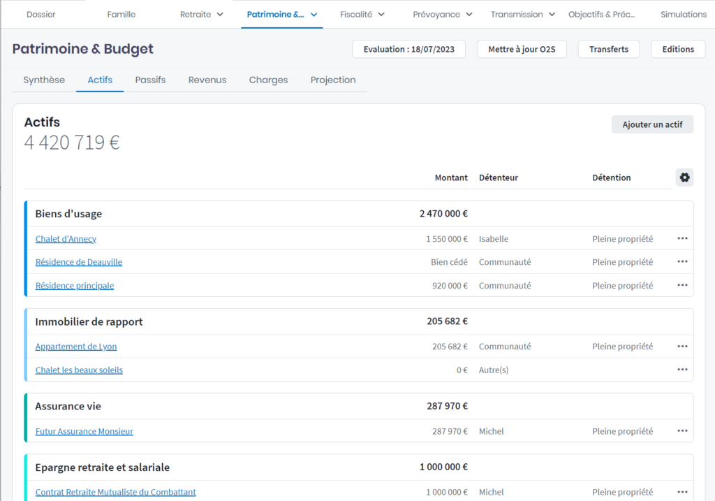 Cette version marque la fin des évolutions de l’interface qui visent à homogénéiser les comportements au sein de l’application avec par exemple le déplacement des boutons d’action en haut à droite, et dans le patrimoine, le déplacement du bouton « Ajouter un actif » à l’intérieur de l’onglet Actifs.
