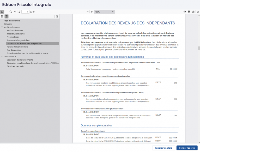 - Une nouvelle édition dédiée à la Déclaration des Revenus des Indépendants présentant spécifiquement les données