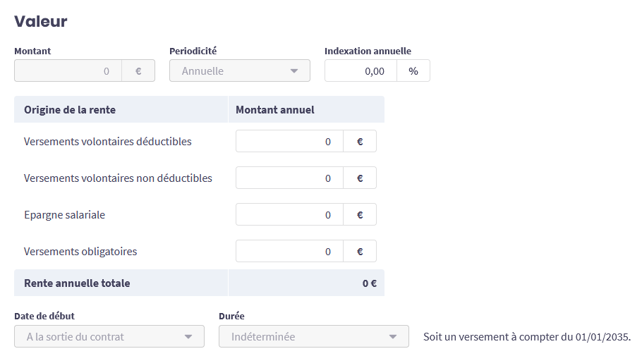 Afin d’appliquer le traitement fiscal adapté, il vous faudra renseigner le montant de la rente par origine.
