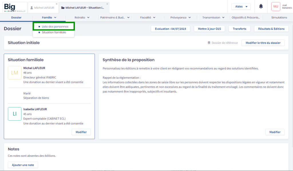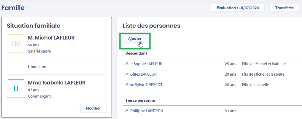 Rendez-vous dans la liste des personnes de l’onglet Famille du dossier client.
