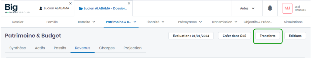 Pour ce faire, cliquez sur le bouton Transferts dans la partie haute de l’écran