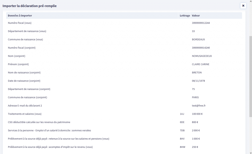 Si les données sont déjà présentes dans la déclaration, elles seront écrasées par celles contenues dans la déclaration préremplie.