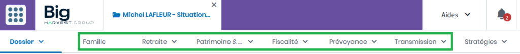 Dans les sous-menus des différentes rubriques de vos dossiers clients :