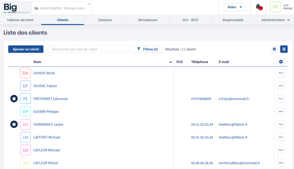 Pour créer un nouveau client, cliquez sur Ajouter un client en haut de la page Clients. Big crée alors un client et un dossier qui lui est rattaché.