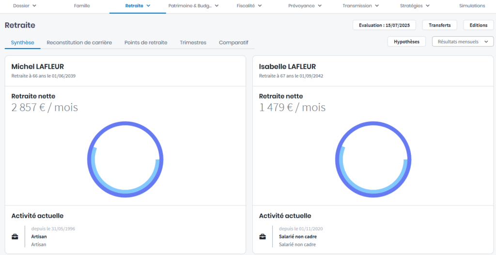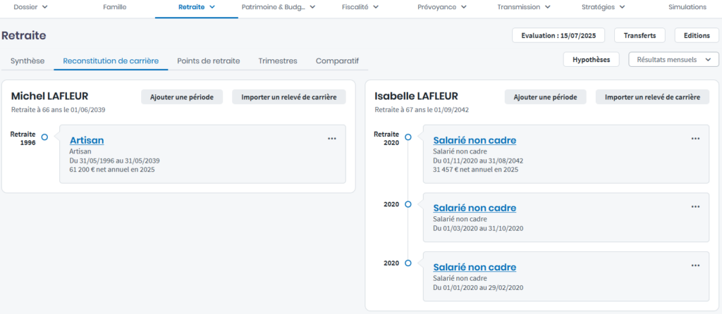 Les périodes professionnelles ainsi renseignées reconstituent la carrière du client et de son conjoint.
