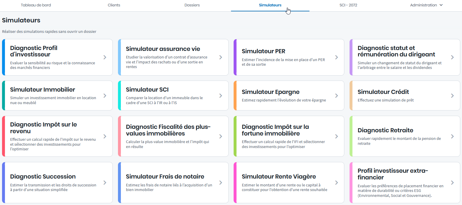 Dans le menu Simulateurs, vous pouvez réaliser des simulations, même si votre prospect ou client ne dispose pas encore de dossier dans Big.