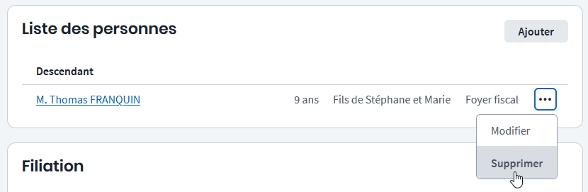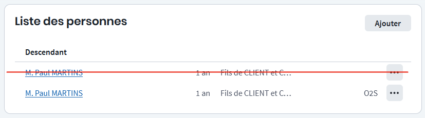 - Vérifier la présence des enfants dans le contact issu de la fusion
