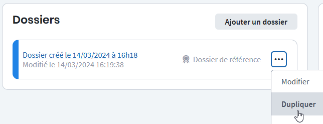 - Dans Big, dupliquer le dossier de référence pour conserver une copie des informations.