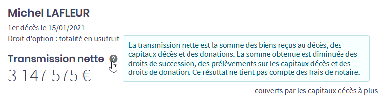 • Successorale affichant la transmission du patrimoine en cas de décès et les droits à payer.